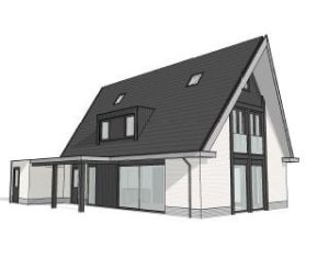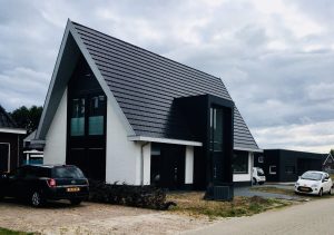 Deze modern eigentijdse woning op plan de Berghorst is uitgevoerd in wit gekeimd metselwerk, antraciete houten gevelbekleding en antraciet kozijnen.